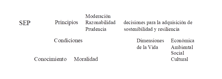 Así, la SEP proporciona una orientación hacia un estilo de vida sostenible, que considera el conocimiento y la moral como elementos determinantes de la racionalidad para la evaluación de los factores involucrados y los posibles resultados de las interacciones entre múltiples actores sociales, así como de la generación de la inmunidad para preparar individuos, comunidades e instituciones para los impactos y cambios advenidos de situaciones de crisis.
