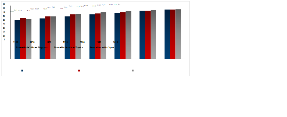 La siguiente gráfica, muestra la mejora en el promedio de vida desde el año de 1960 al 2018